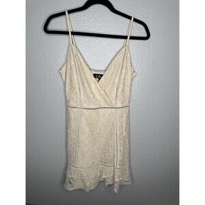Lulus Dress Womens Small Ivory Lace Surplice Spaghetti Strap Scallop Hem Lined