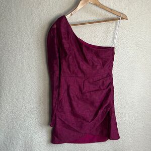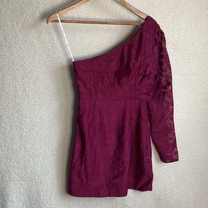 Lulus Dress Womens Small Magenta Burnout Floral Print One‎ Shoulder
