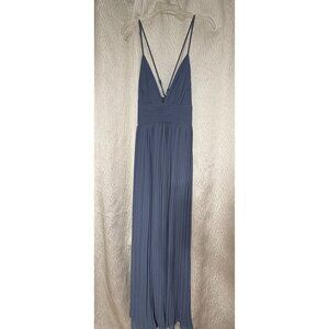 Lulus Dusty Blue Pleated Maxi Dress With Crisscross Back V-Neck New Women's S