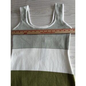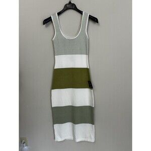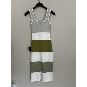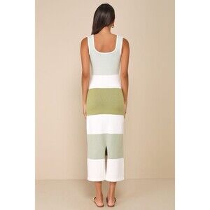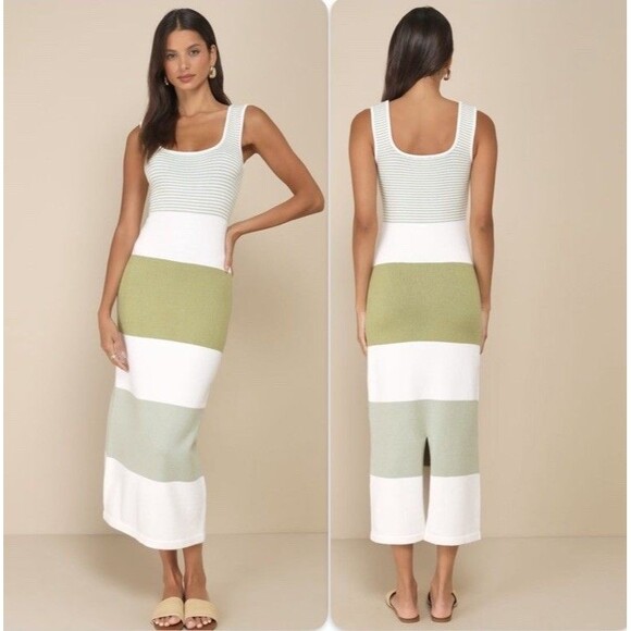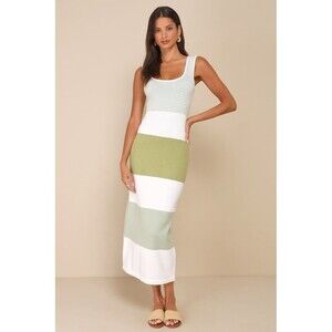 Lulus Easily Gorgeous Ivory and Sage Green Striped Midi Sweater Dress NWT Size M
