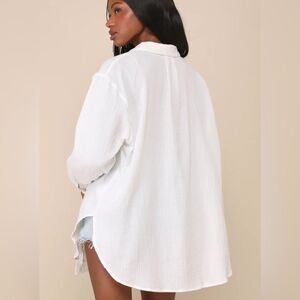 Lulus Easy To See White Oversized Button-Up Top Womens Size XL 100% Cotton Gauzy