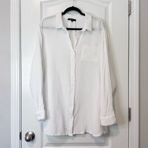 Lulus Easy To See White Oversized Button-Up Top Womens Size XL 100% Cotton Gauzy