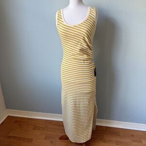 Lulus Edeva Yellow and Ivory Striped Knit Midi Dress Size Medium