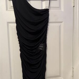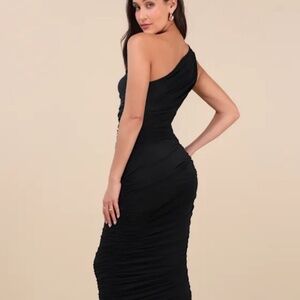 Lulu's Effortless Magnetism Black Ruched One-Shoulder Maxi Dress