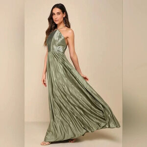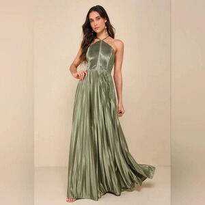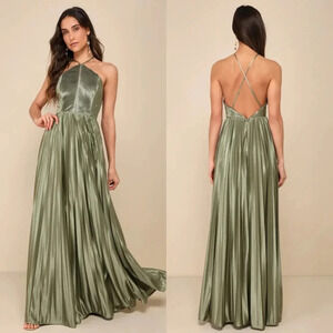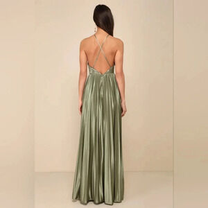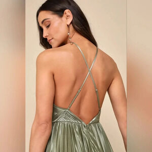 Lulus Elaborate Charm Olive Green Satin Pleated Backless Maxi Dress XL Wedding NWOT. See all pictures for details.