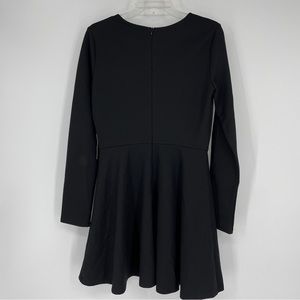 This elegant black dress features long sleeves and a flattering fit-and-flare silhouette. Perfect for any occasion, it combines style and comfort effortlessly.