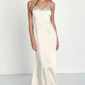 Lulu's Elegant Cream Maxi Dress