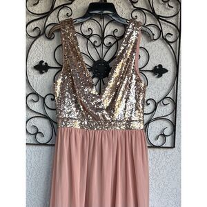 Lulus Elegant Encounter Sequin Maxi Dress - Large - Rose Gold