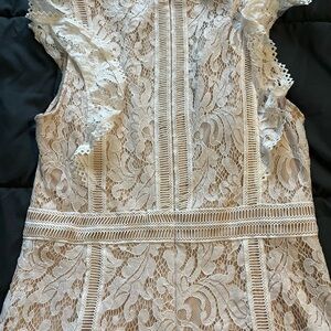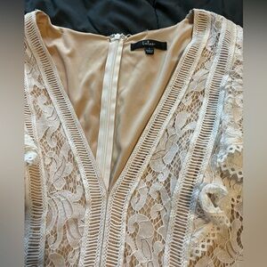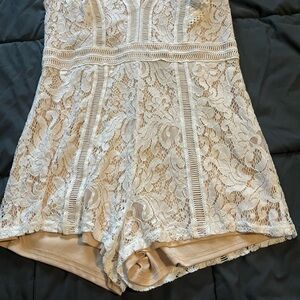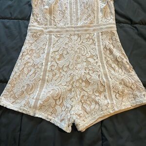 Chic lace romper in a beautiful cream color. Features delicate lace detailing and a flattering fit.