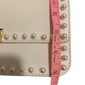 This chic cream shoulder bag features a stylish studded design and a sleek chain strap. Perfect for adding a touch of elegance to any outfit.