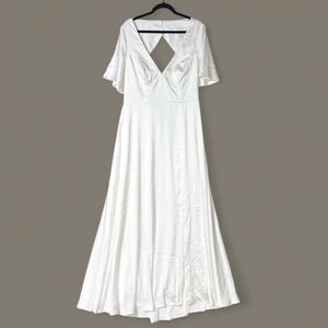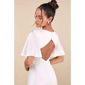 Lulus Elegant Confidence White Satin Flutter Sleeve Cutout Maxi Dress Size XL Ne