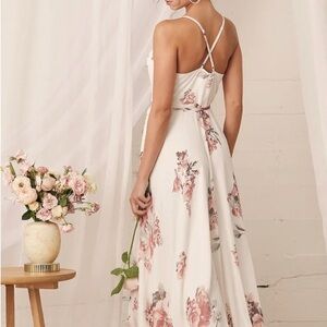 Lulu's Elegantly Inclined Cream Floral Print Wrap Maxi Dress bridesmaid formal