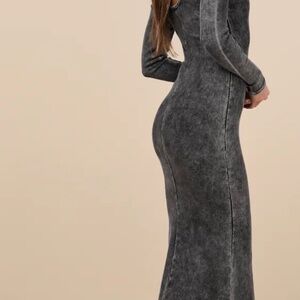 Lulus Elevated Coolness Washed Black Long Sleeve Bodycon Midi Dress - Size M