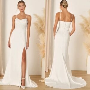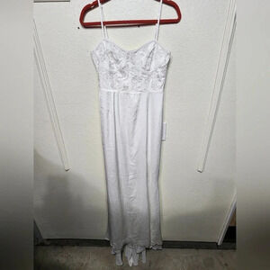 Lulus Elevated Glamour White Satin Sequin Bustier Mermaid Maxi Dress M Wedding. New without tags. See all pictures for details.