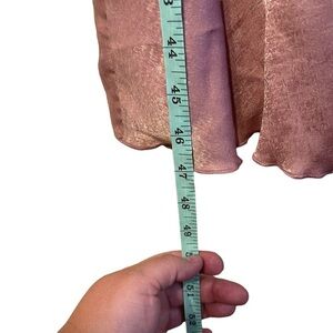 Beautiful shiney, flowy, and blush satin like fabric. Pair this with dangly earrings and a nude heel for the perfect evening out look!