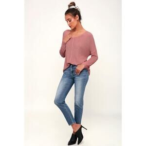 Lulu's Eloise Dusty Pink V Neck Loose Knit Sweater Small