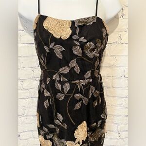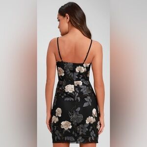 Lulus Elston Black Floral Embroidered Bodycon Dress Size Small
