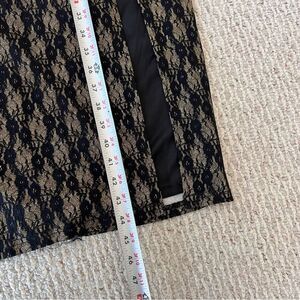 Lulu’s Embrace the Evening Gold and Black Lace-Up Lace Midi Dress