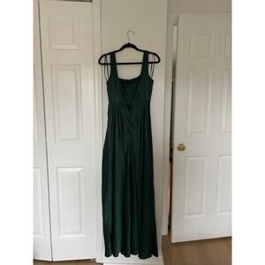 Keywords: green, bridesmaid, wedding guest, black tie, dark green, emerald, forrest green, gown, satin