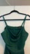 Beautiful dress, cowl neck with a slit up the let. Emerald color, smooth satin. Very flattering, worn once. Approx 44” length, which is midi on me.