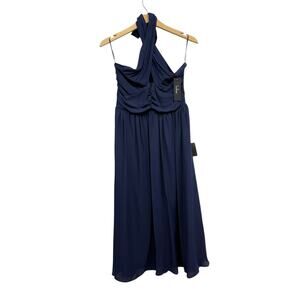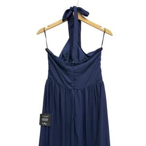 Lulus Emrah Navy Cross-Front Cutout Halter Midi Dress size Medium NWT