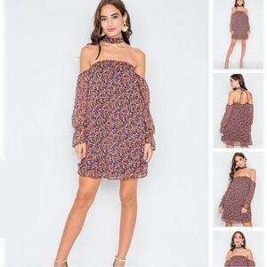 Lulu's Off The Shoulder Choker Strappy Cage Back Dress