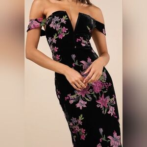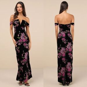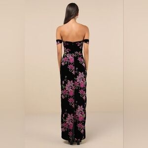 Lulus Enchanting You Black Burnout Velvet Off-the-Shoulder Maxi Dress S Wedding. New without tags. See all pictures for details. Currently SOLD OUT online.
