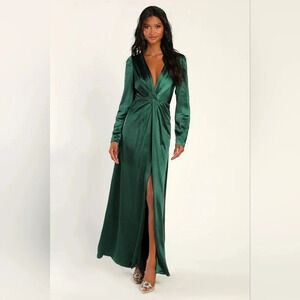 Lulu's Endearing Elegance Emerald Green Satin Long Sleeve Maxi Dress M Wedding NWOT. See all pictures for details. Size currently SOLD OUT online.