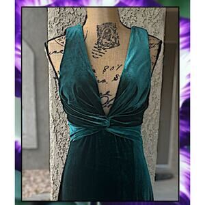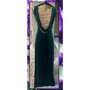 Lulus Enhanced Aura Emerald Green Velvet Cowl Back Maxi Dress Size M