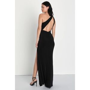 Lulus Especially Breathtaking Black Ruched One-Shoulder Maxi Dress Size L NWT