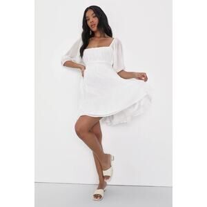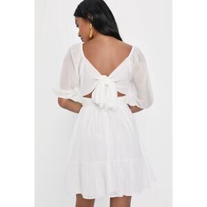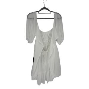 Lulus “Ethereal Arrival” White Puff Sleeve Tie-Back Chiffon Mini Dress – Large NWT
