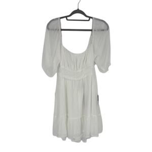 Lulus “Ethereal Arrival” White Puff Sleeve Tie-Back Chiffon Mini Dress Large NWT