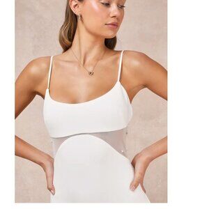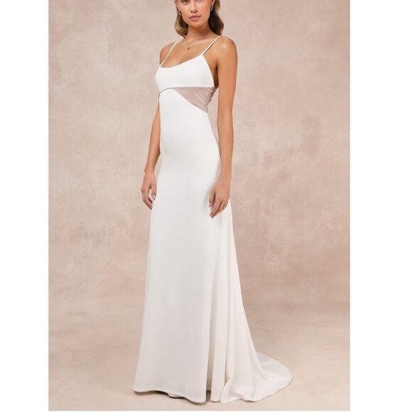 Lulus Euphoric Eloquence White Sheer Mesh Pearl Sleeveless Maxi Dress XS NWOT