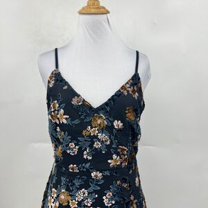 LULUS EVENING WITH YOU DRESS WOMENS S SMALL FLORAL VELVET ASYMMETRICAL LINED