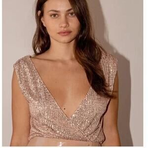 Lulu's Evening of Wonder Bodysuit Gold Sequin Cowl Back NWT M