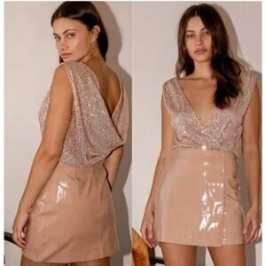 Lulus Evening of Wonder Bodysuit Gold Sequin Cowl Back NWT M
