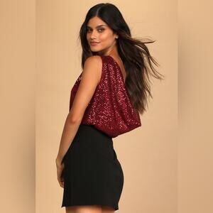 Lulus Evening of Wonder Burgundy Sequin Cowl Back Bodysuit XL