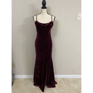 Lulus Everything I Do Wine Velvet Cowl Neck Mermaid Maxi Dress NWOT Size S Small