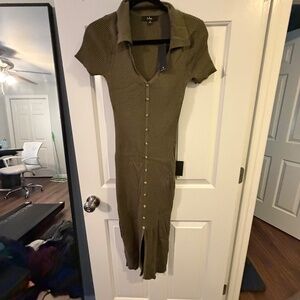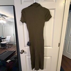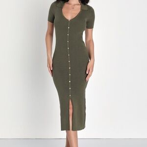 Lulus Excellent Energy Olive Green Ribbed Knit Collared Midi Dress - Size S