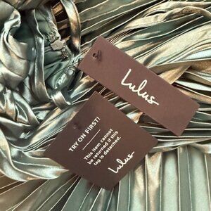 You're sure to be greeted with compliments from every direction when you arrive wearing the Lulus Exceptional Drama Sage Green Satin Lace-Up Pleated Maxi Dress! Sleek woven satin, with luxe accordion pleats throughout, shapes a sleeveless bodice with ruff. Tie in back makes dress very adjustable based on size. New with tags, never worn before but just missed the return window