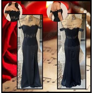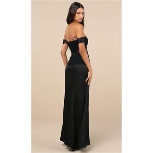 Lulus Exceptionally Exquisite Black Lace Off-the-Shoulder Maxi Dress Size M
