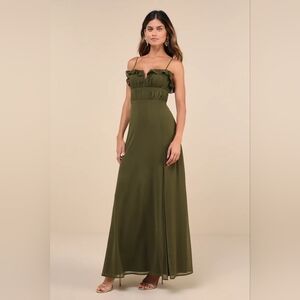 Lulus Exemplary Beauty Olive Green Sleeveless Tie-Back Maxi Dress M Wedding Prom NWOT. See all pictures for details.