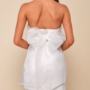 Lulus Exquisite Glamour White Mesh Sequin Strapless Bow Mini Dress - Size XS