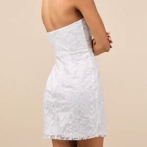Lulus Exquisite Sensation White Embroidered Strapless Mini Dress