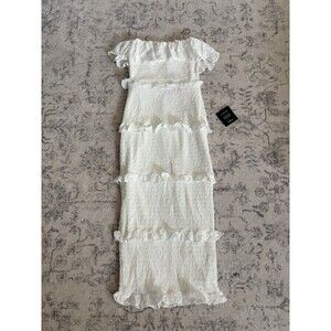 Lulus Eye-Catching Presence White Smock Tiered Strapless Midi Dress Small Beach