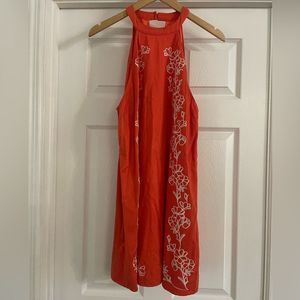 Lulu’s Fabiola Coral Orange Embroidered Halter Shift Dress