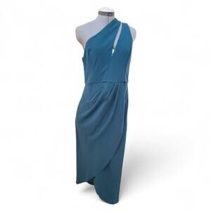 Lulus Fabulous Forever Teal One-Shoulder Cutout Tulip Midi Dress Size Large