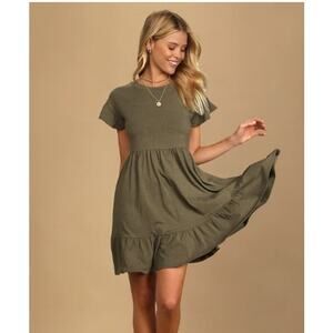 Lulus Olive Green Tiered Babydoll Dress