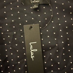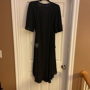 Chic black wrap midi dress featuring a white triangle pattern. Ideal for office wear or for a function. NWT. Make an offer!