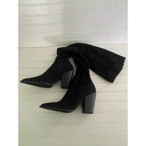 Lulus Faux Suede Knee High Pull On Boots Pointy Toe Mod Block Heel Size 8